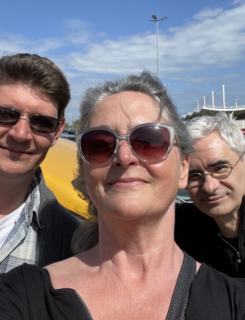 Left to right: Thorsten Janes, Melina Sedó, Andreas Wichter on their way to the UK Games Expo 2025.